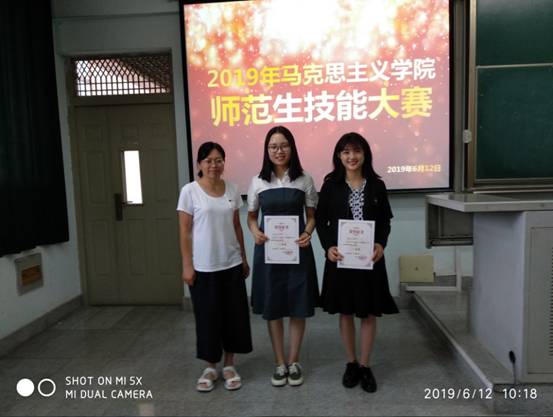 (通讯员:周儒峰)2019年6月12日上午8点,马克思主义学院师范生教学技能竞赛决赛在东校区13教A302隆重举行。我院党总支书记吴志勇老师、副院长黄晓云老师、政治系主任贾廷秀老师、周涛老师、卢军老师、汤波兰老师以及思想政治学科教学论教师万敏应邀担任本次比赛的评委。