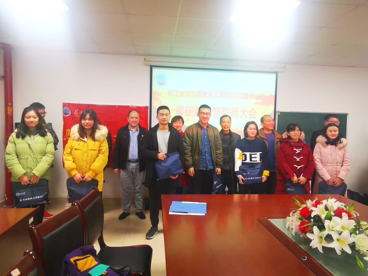 (通讯员 王鸿 摄影 梁雨欣)为帮助考研学生缓解压力、增强信心,马克思主义学院于12月18日下午4:00在文科大楼1104举行2020届毕业生考研慰问暨誓师大会,学院党委书记吴智勇、院长姜学勤、党委副书记马小佼、副院长涂江波、院长助理徐骆、院长助理谷军、思政11601班班主任邓亚中、全体2020届毕业生以及部分低年级学生代表参加了大会。