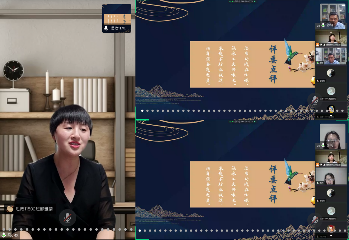 与经典同行,打好人生底色;与名著为伴,塑造美好心灵。为倡导全民阅读,共建书香长大,5月24日晚7:00,马克思主义学院通过腾讯会议举办了第十一届“悦读经典 读善其身”读书报告会决赛暨第九届“思政之音”文化节开幕式,让老师及同学们共同享用了一场文化的饕餮盛宴。