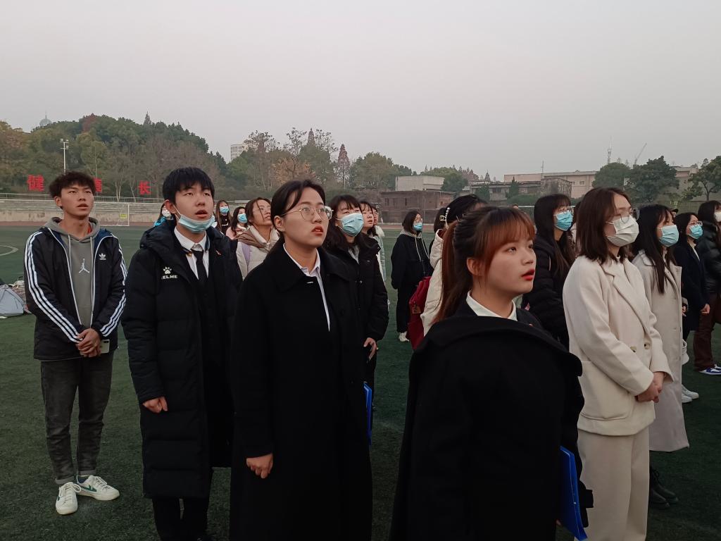 (通讯员 周芯如)12月6日早7时,马克思主义学院在东校区田径场举行“奋进新征程,走好赶考路”主题升旗仪式。学院党委书记刘小燕、党委副书记马小佼、副院长涂江波、学工办主任张云雾、辅导员李敏及全体同学参与本次活动。