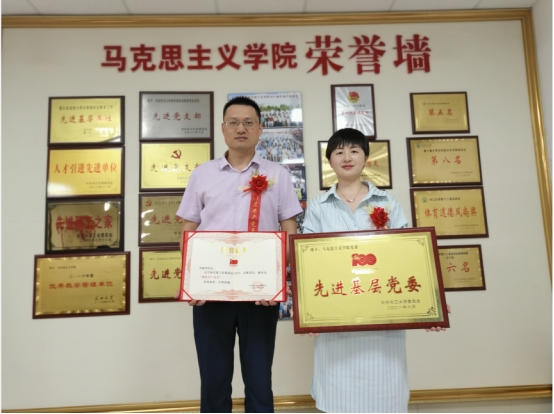 马克思主义学院党委被授予先进基层党委,思政课部荆州党支部被授予先进党支部,学院党委副书记马小佼被授予优秀党务工作者,辅导员张云雾、2019级研究生郑亚岚被授予优秀共产党员,思政课教师李振华被授予模范共产党员,并在全校表彰大会上领誓,带头重温入党誓词。