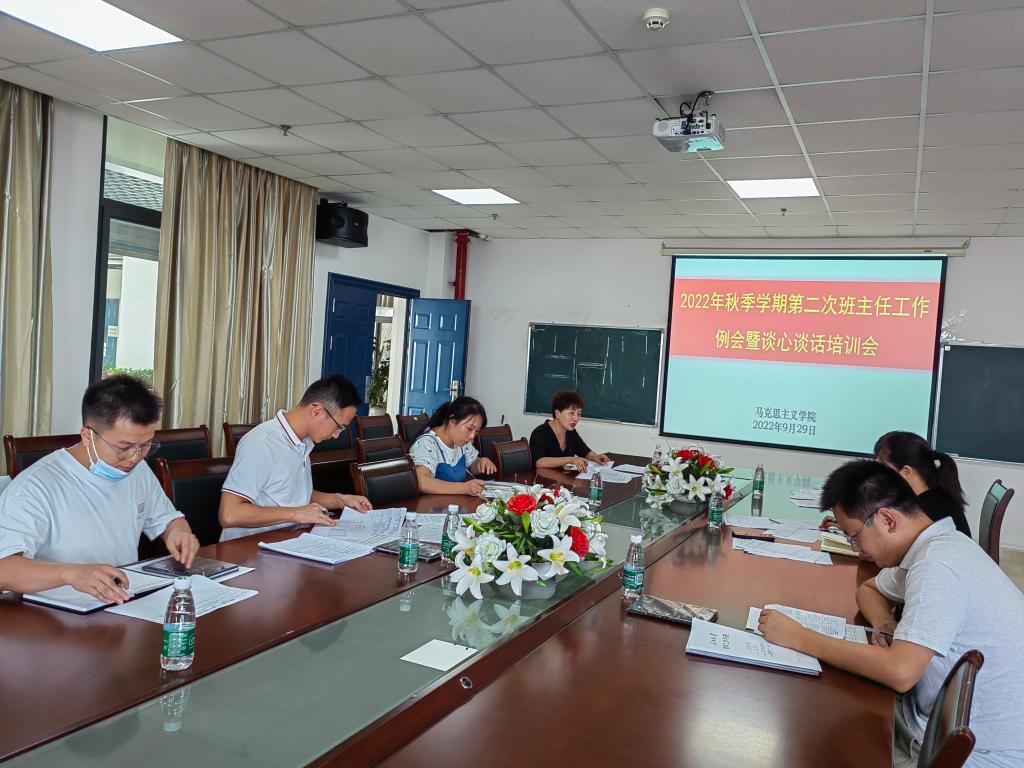 提升谈话技能,推进心理育人。2022年9月29日下午,马克思主义学院在文科楼1104室召开本学期第二次班主任工作会,专题开展谈心谈话培训。学院党委副书记马小佼、全体辅导员及班主任参会。