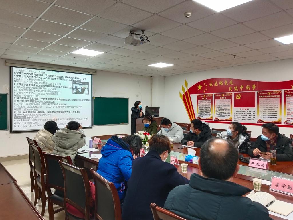 本次理论学习内容包括党的二十大精神、习近平新时代中国特色社会主义思想、疫情防控工作、普法宣传教育、清廉长大建设、师德师风建设六个专题,采取个人自学、主题研讨、集体学习等多种方式开展。刘小燕书记重点领学了党的二十大报告第五部分、《中共长江大学委员会关于深入学习宣传贯彻党的二十大精神的通知》、《习近平关于社会主义精神文明建设重要论述摘编》、《习近平总书记主持召开中共中央政治局常务委员会议 听取新冠肺炎疫情防控工作汇报 研究部署进一步优化防控工作》、《现行宪法公布实施40周年:保障中华民族实现伟大复兴的根本法》等重要文件和会议精神,传达学习了中央经济工作会议和学校中层干部学习贯彻党的二十大精神集中培训会等会议精神,并对学院寒假工作进行了安排部署。