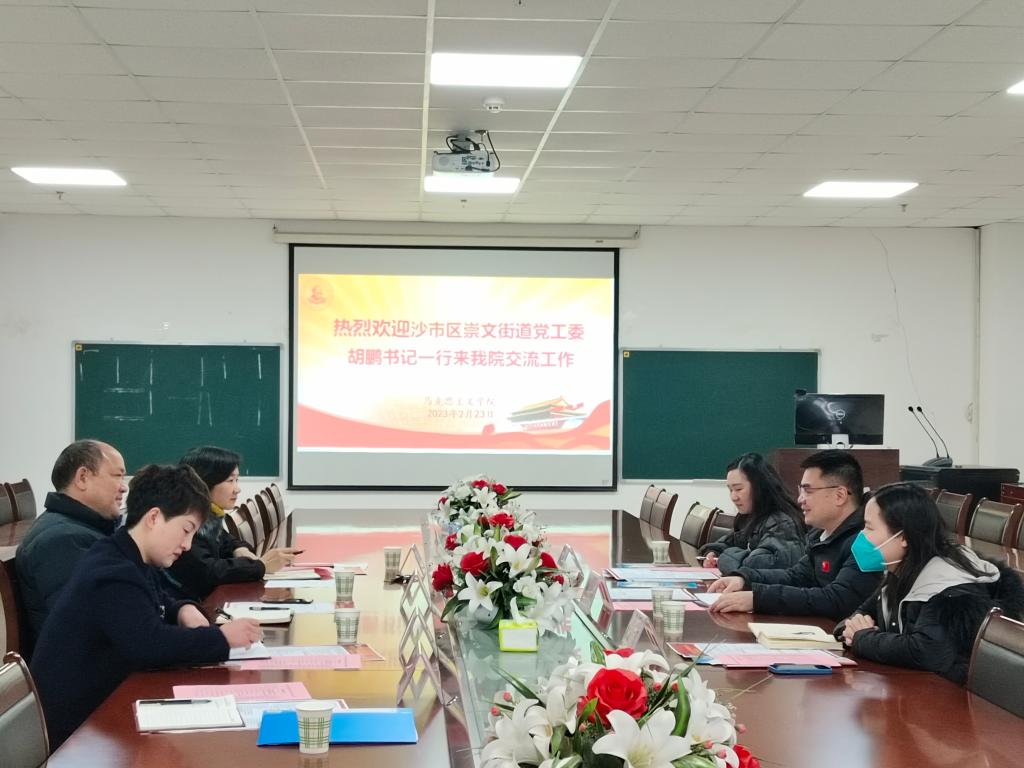 姜院长首先代表学院致欢迎辞,并介绍了我院的师资力量、人才培养、科学研究、服务社会的有关情况,刘书记介绍了学院党政干部培训中心概况。胡鹏书记则介绍了崇文街道的基本情况和本次来访目的。