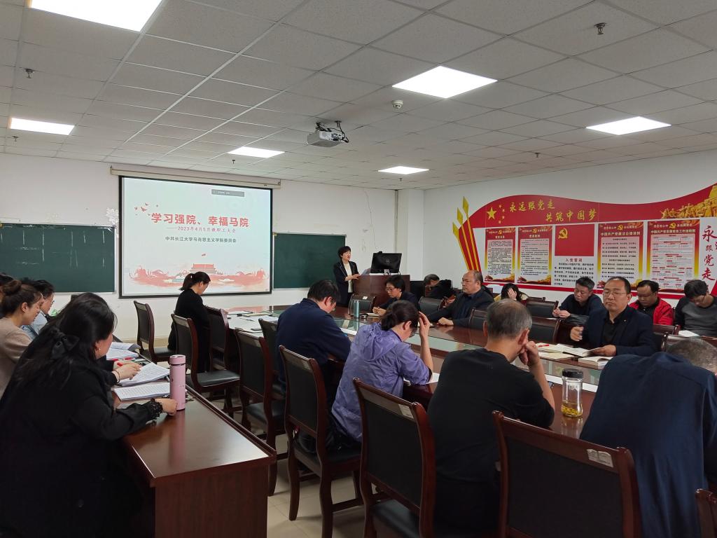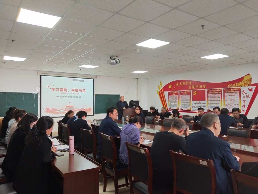 5月11日下午,马克思主义学院在文科楼1104室召开本月教职工大会,全院教师以线上线下相结合的方式参会。会议由院长姜学勤主持。