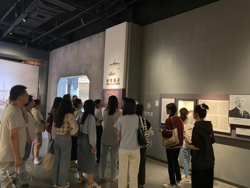 沙市记忆(1876--1949)文化展示馆通过水运码头、开埠商城、近代工业和峰火岁月四个展厅,全面介绍了沙市从清末古镇向近代商埠转型的变迁史。烽火岁月展厅建出浓厚的历史氛围,通过张张定格历史的老照片和件件见证历史的老物件展示了沙市沦陷—光复—解放的过程。让同学们在深受荆州文化和历史的熏染同时,厚植爱国情怀、砥砺报国之志。