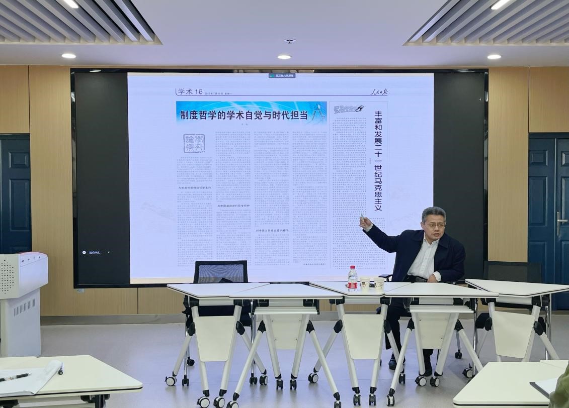 (通讯员 黎娟 王雅云)11月17日上午,我院在文科楼1008会议室举办了“2023年度马克思主义学院系列学术讲座第六场”,此次活动邀请到了中央党校马克思主义学院教授、博士生导师辛鸣教授担任主讲人,他为我院师生带来了一场题为“制度哲学的理论建构”的精彩报告。讲座由学院副院长涂江波教授主持,学院部分教师、全体研究生聆听了此次学术报告。