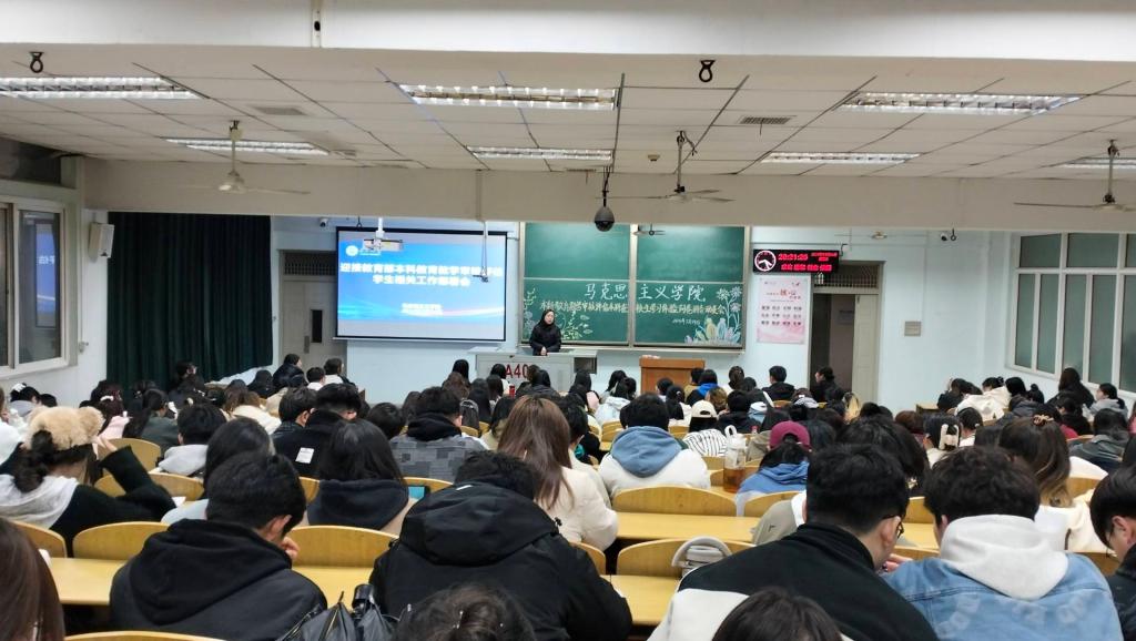 (通讯员∕李沁沁 万希)3月24日晚,马克思主义学院迎接教育部本科教育教学审核评估学生相关工作部署会在13教402室召开。院学工办主任张云雾老师主持会议,全体本科在校生参会。