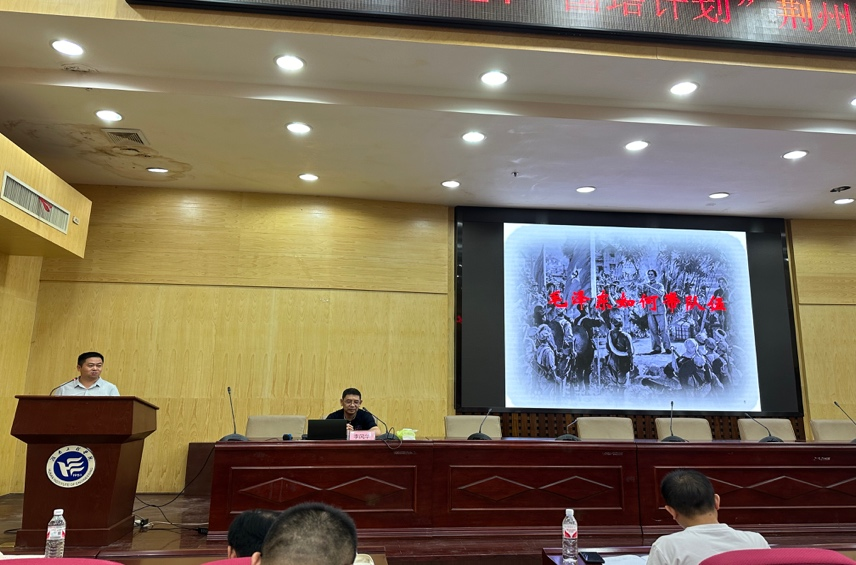 2024年8月8日上午,长江大学2024“国培计划”荆州市中小学党组织书记研修班继续开讲,主题为《毛泽东如何带队伍》。本次报告邀请到了湖南师范大学马克思主义学院博士生导师李风华教授主讲。百余名研修班学员、部分研究生代表在湖南工程学院报告厅专注的聆听了报告。