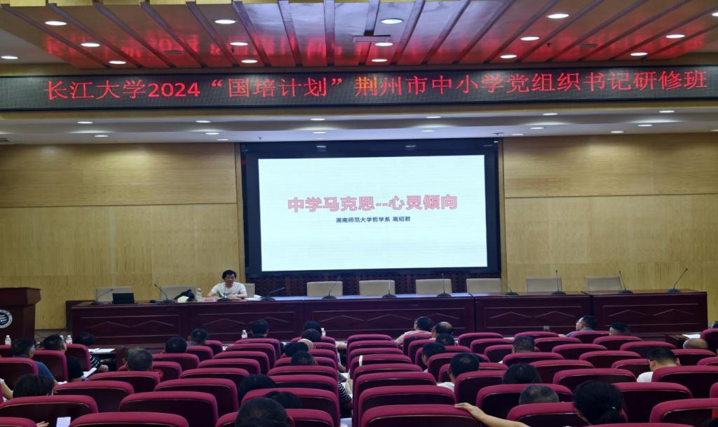 8⽉8⽇下午, 湖南师范大学中华伦理⽂明研究中⼼研究员、硕⼠⽣导师、 中国⼈⺠⼤学哲学博⼠⾼绍君教授带领荆州市中小学幼儿园的百名党组织书记、校⻓、园长⼀起探源⻢克思思想根源, 通过揭秘⻢克思中学时期的学习经历、思想萌芽及社会环境,帮助参训者深⼊理解⻢克思思想的根源,激发了参训者对⻢克思主义理论的学习兴趣。