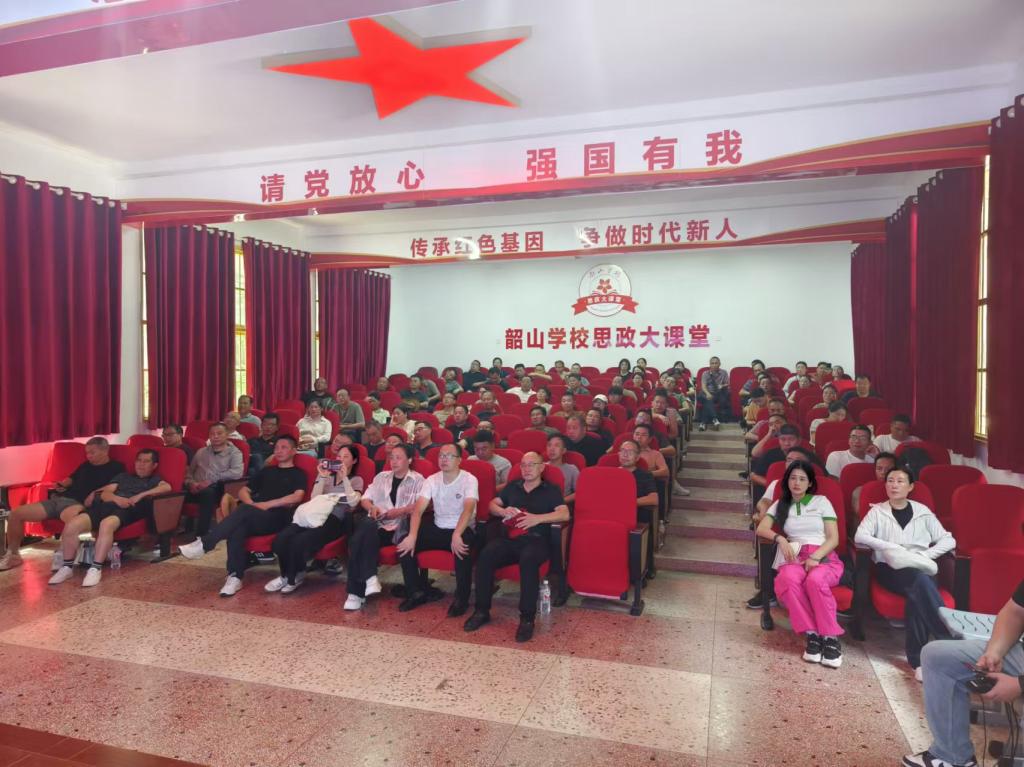 在韶山学校思政大课堂里,观看了《“我的韶山行”红色研学汇报片》,上了一堂生动的“音乐思政课”。从“孩儿立志出乡关,学不成名誓不还”的青年毛泽东、写下《青春》的李大钊,为人民服务的焦裕禄、抗美援朝的中华儿女,到数风流人物还看今朝的袁隆平、敢叫日月换新天的战斗在脱贫攻坚一线的党员青年,“音乐思政课”分四个篇章讲述着新中国历史上各个阶段中国共产党的伟大。接着,全体学员肃立,举起右拳面对国旗庄严承诺:请党放心,强国有我。