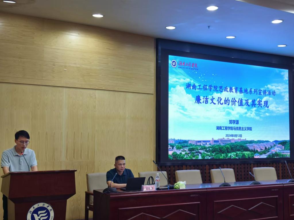 邓院长从廉洁文化的基本理论、廉洁文化的价值内涵、廉洁文化的价值实现三个方面作了关于“廉洁文化”的宣讲,这是一次思想的 洗礼,更是一次心灵的震撼。邓院长以其深厚 的学术功底、严谨的治学态度和生动的讲解方式,为我们呈现了一场精彩纷呈的讲座。他旁征博引,将廉洁文化与生动的案例相结合,使原本可能枯燥的理论知识变得鲜活而易于理解。