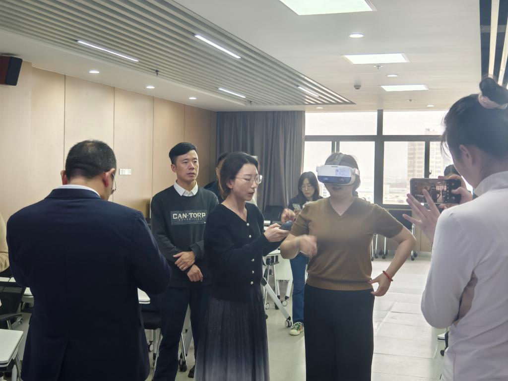 之后,涂院长就我院VR实验室的建造、使用、设备管理及后期运营等多个方面进行了详细介绍,湖南工程学院的几位老师也亲身体验了VR眼镜等先进设备并给出了一致的好评。