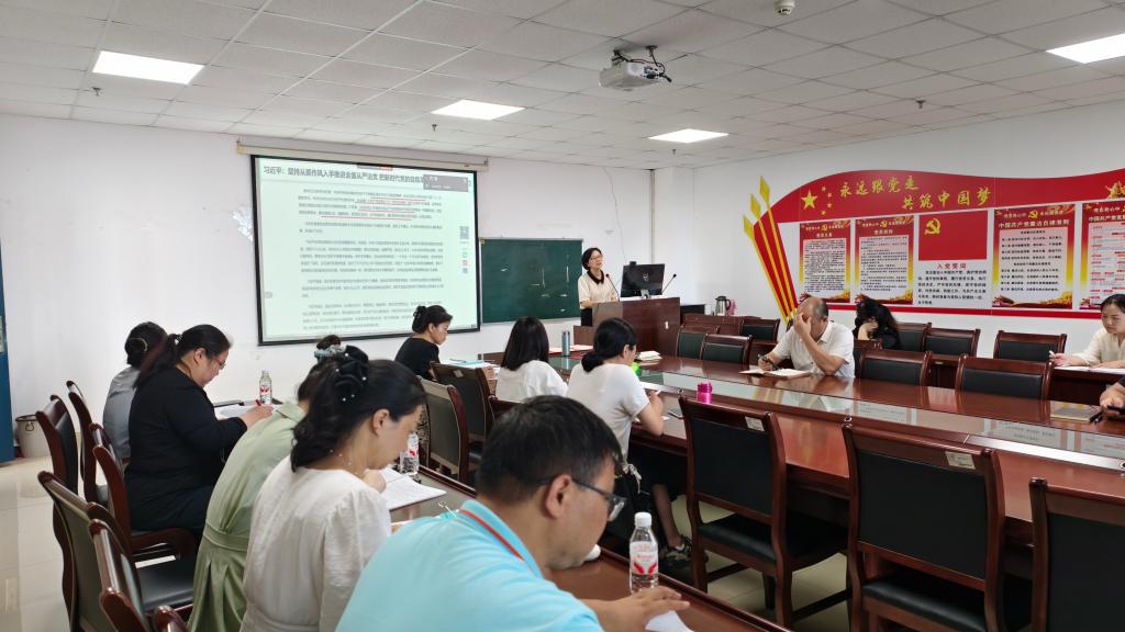 会上,刘小燕书记领学了习近平总书记在中共中央政治局第二十一次集体学习时的重要讲话精神,习近平总书记在中共中央政治局会议审议《党中央决策议事协调机构工作条例》时的重要讲话精神,《求是》杂志发表的习近平总书记重要文章《团结奋斗是中国人民创造历史伟业的必由之路》,以及中共中央组织部发布的《中国共产党党内统计公报》;传达了中央党的建设工作领导小组印发的《关于集中整治违规吃喝的通知》,中央层面关于几起党员干部违规吃喝、严重违反中央八项规定精神典型问题的通报,以及学校专题研究部署集中整治违规吃喝工作部署会精神,向全院教职工通报了班子查摆问题清单以及整改进展等,针对违规收送礼品礼金、侵害群众利益、不担当不作为等突出问题,动真碰硬开展集中整治。她还传达了学校庆祝中国共产党成立104周年暨“两优一先”表彰大会会议精神以及2025年暑期工作部署会会议精神,强调了年度目标任务推进、暑期安全管理以及教职工健康体检等事宜。会上还对获得学校“两优一先”表彰的教师代表进行了颁奖。