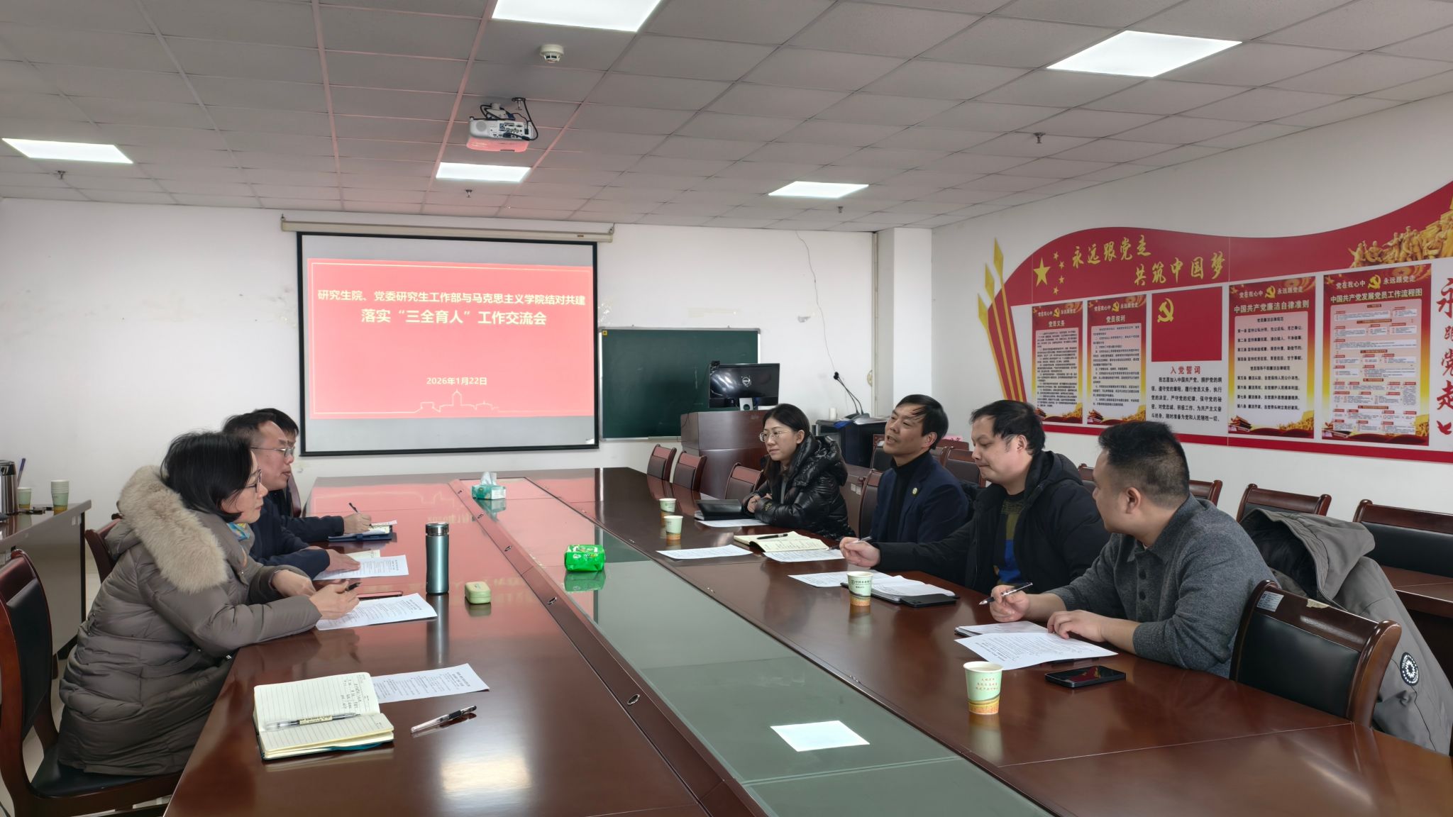 1月22日下午,学校党委研究生工作部部长兼研究生院常务副院长关辉一行来到马克思主义学院,就推动落实“三全育人”工作进行座谈交流,会议由马克思主义学院党委书记刘小燕主持。