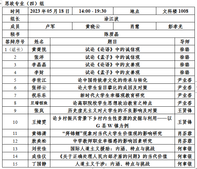 2. 每小组安排半天答辩,学生人数应在15名以内;安排全天答辩,学生人数应在30名以内。