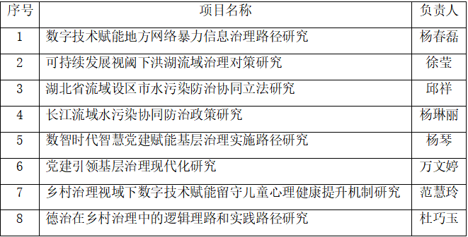2024年湖北省高校人文社会科学重点研究基地 湖北省域基层治理研究中心课题拟立项名单公示