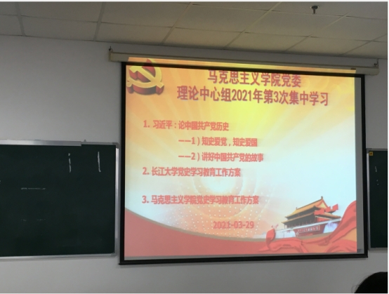 3月29日,马克思主义学院在文科楼1104室举行了中心组第三次集中学习,重点学习了习近平同志《论中国共产党历史》。