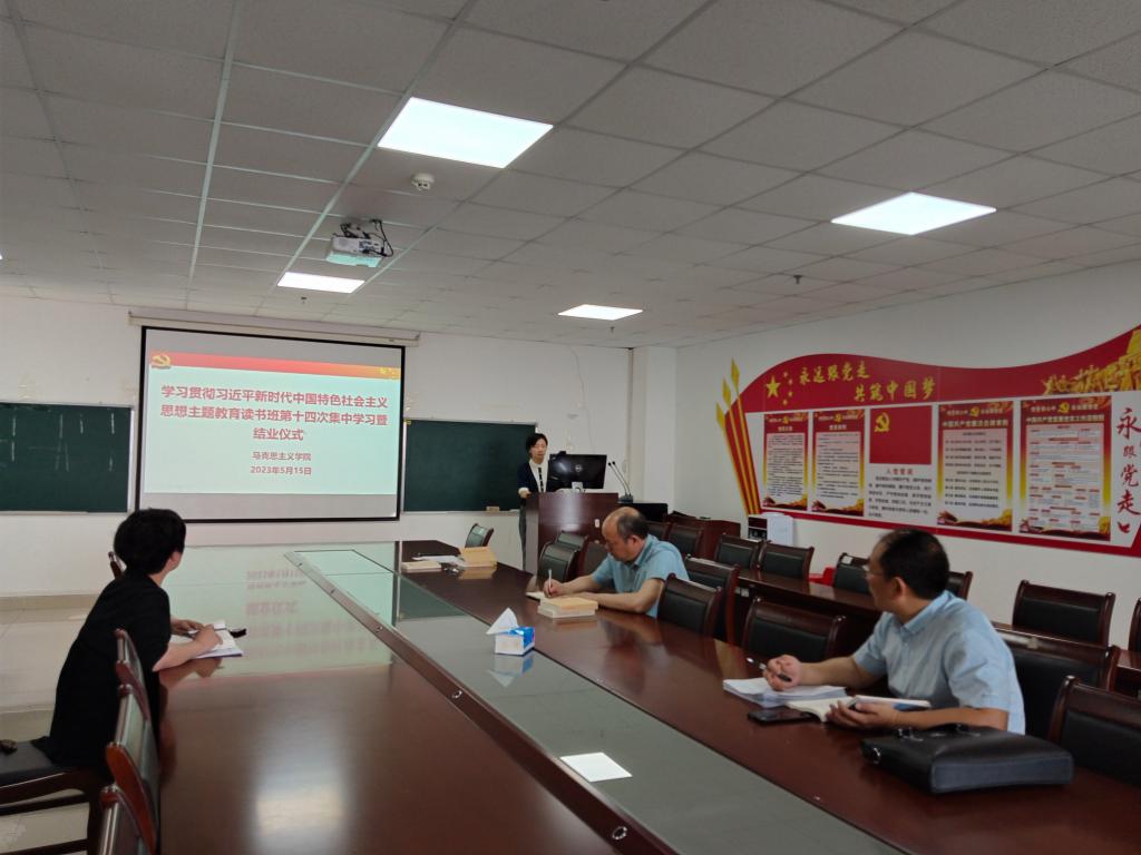 5月15日上午,马克思主义学院学习贯彻习近平新时代中国特色社会主义思想主题教育读书班在文科楼1125室开展第十四次集体学习,围绕“学思想强党性重实践建新功”的总要求开展了专题研讨,并举行了读书班结业仪式。