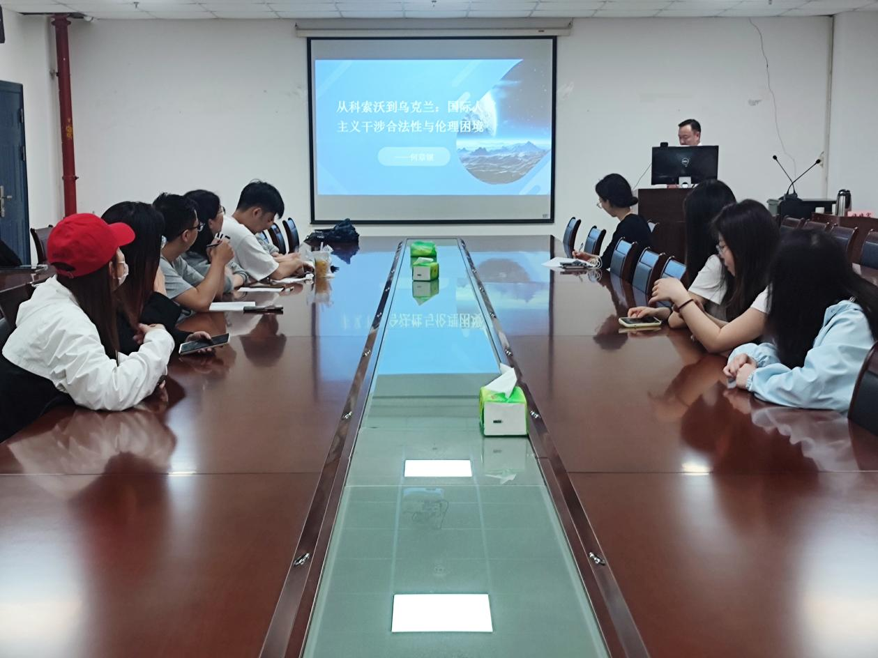(通讯员 贾献涛)为引发对于主权、人权与国际秩序关系的深层思考,4月11日上午,马克思主义学院求实导师学术沙龙第十期于文科楼1104室成功举办。本次讲座由法学博士、教授、硕士生导师何章银教授主讲,他以科索沃战争和乌克兰危机为例,探讨国际人道主义干涉的合法性与伦理困境。学院研一、研二部分学生参与。