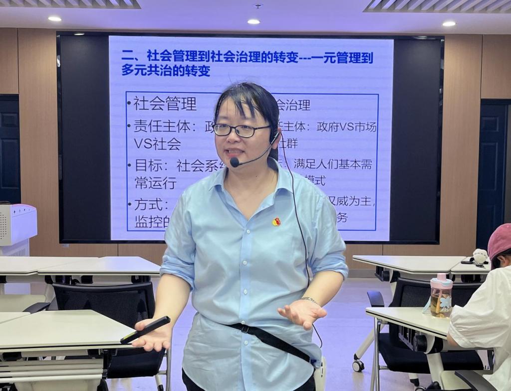 刘琼从社会治理的定义与辨析、社会管理到社会治理的转变和社会治理创新的方法三个方面,以“人治”和“法治”的类比,分辨了社会治理与社会管理的差别,以生动的故事和真实的案例讲解了我国社会从一元管理到多元共治的转变。刘琼通过提问,将学生带入社会工作者的角色中,将学术沙龙变为了师生良性互动的课堂;通过视频展示,让学生们更好了解到“浦江经验”、“湖州经验”等社会治理创新办法,认识到从主体、客体多角度创新治理方法对加强城乡社区治理的重要性。她强调“从社会管理到社会治理,这不仅是我国治理能力的提升,更是社会建设理念、体制和方式的重大变革”。