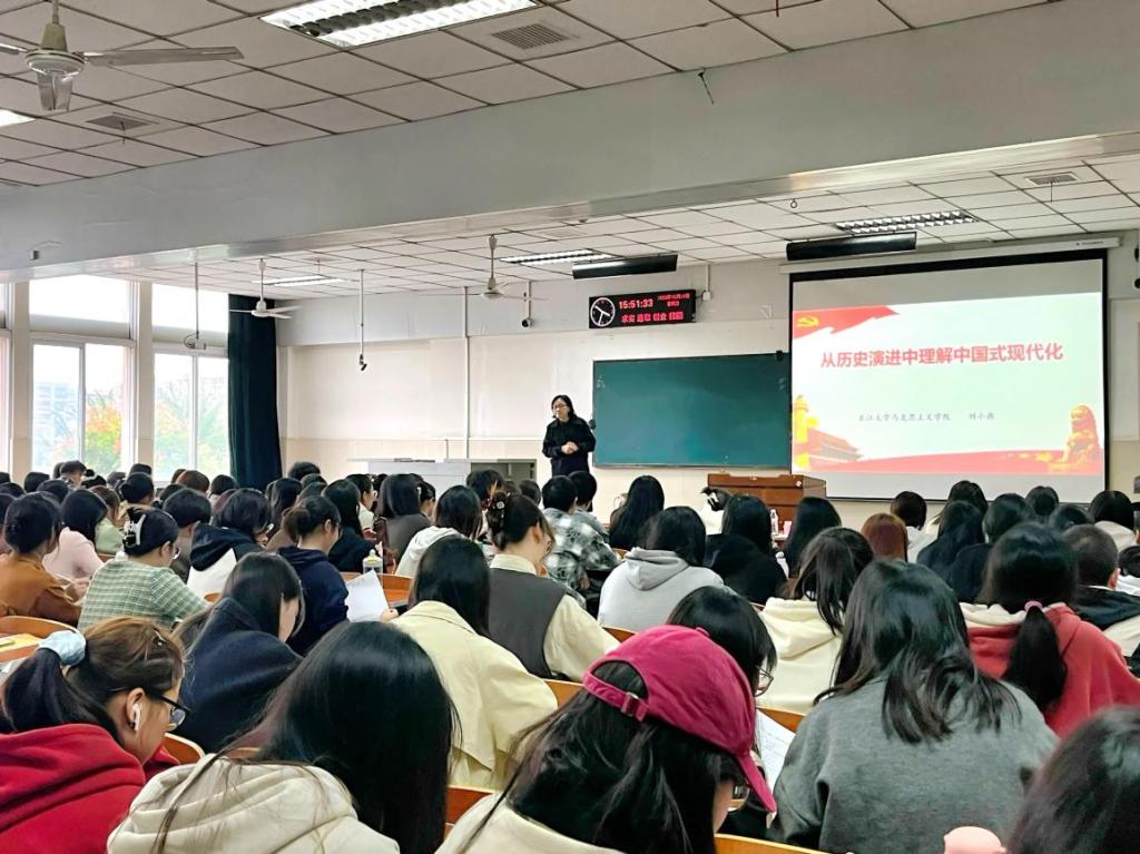 (通讯员 刘诗雨 汤羽彤)10月16日,马克思主义学院求实导师学术沙龙第二期在东校区12教204教室成功举行。本次讲座以“从历史演进中读懂中国式现代化”为题,由院党委书记刘小燕担任主讲人。