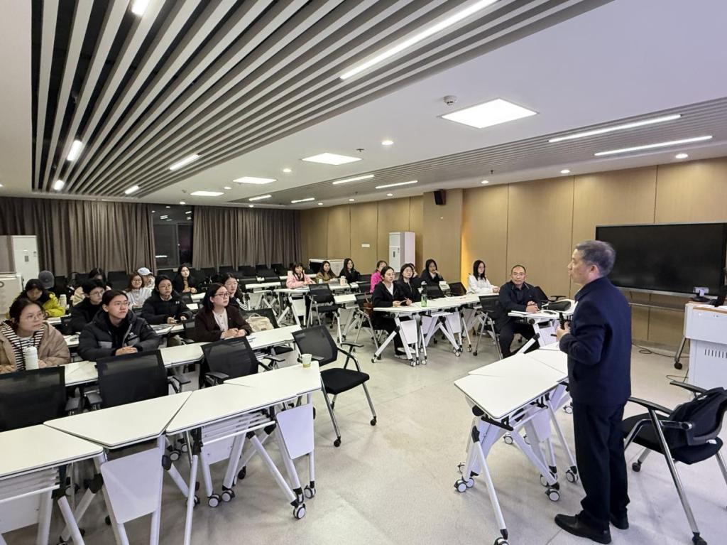 (通讯员 刘诗雨 汤羽彤)论文撰写明规范,笔墨铸魂育真才。12月1日晚,马克思主义学院于文科大楼1008室举办“思政教育五十年”系列学术讲座2025年第十二讲。本次讲座特邀湘潭大学马克思主义学院教授、博士生导师吴家庆主讲,他以《学术论文撰写的要领与规范》为题,结合自身数十年学术研究与论文撰写的丰富经验,为师生带来一场兼具指导性与启发性的学术盛宴。讲座由学院副院长涂江波主持,30余名师生参与聆听。