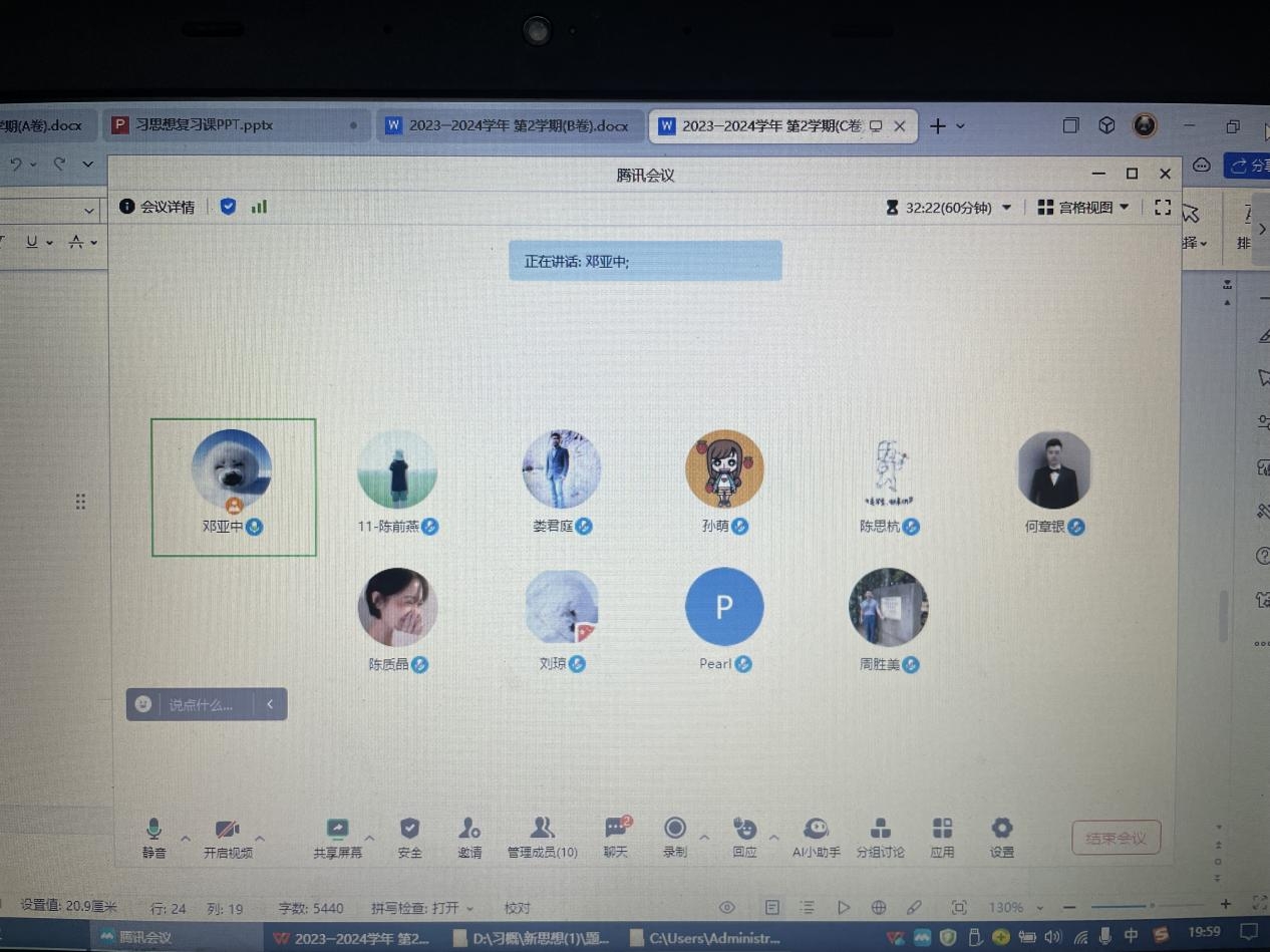 2024年6月5日,《习近平新时代中国特色社会主义思想概论》教研室通过腾讯会议APP线上召集集体备课会,课程组全体教师出席了本次备课会,会议由教研室主任邓亚中主持。
