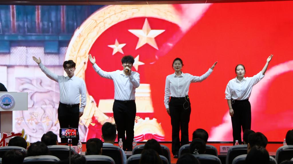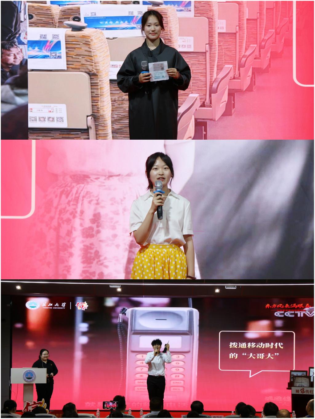 在情景演绎环节,高宇桐、杨耀峰、王羿茹、韩梦彦、曾晓慧、石家乐等同学以书信为媒,通过情景剧《逐梦荆江》生动再现了平凡百姓将拼搏的汗水、奋斗的喜悦、未来的期盼,书写进改革开放伟大进程中的故事。