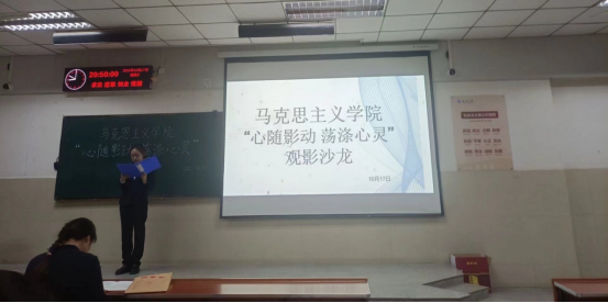 2021年10月17日,马克思主义学院在12教204室开展了“心随影动,荡涤心灵”观影沙龙活动,心理专干张云雾老师及全体大一学生参加了观影。