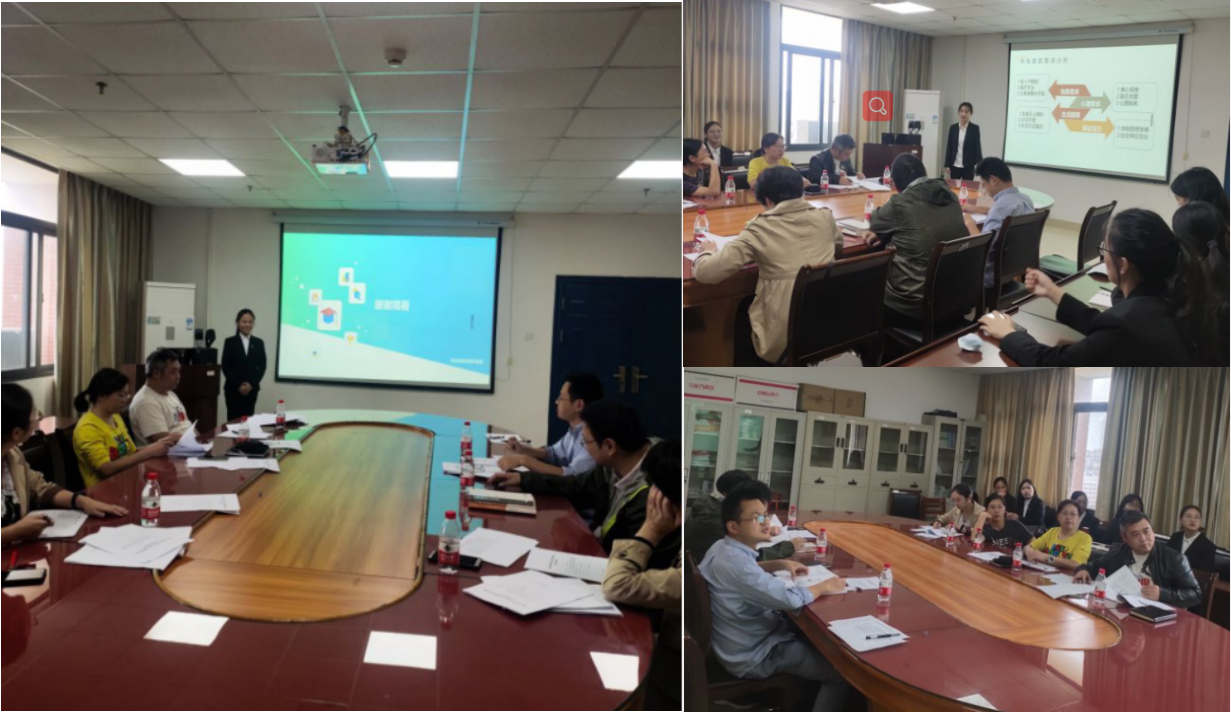首先,丁国静、吴伦广、徐幸、孔碧琳四位项目负责人依次上台从选题背景、研究内容、实施方案和预期成果等方面进行汇报答辩。然后,老师们对四位同学的答辩进行了细致的点评,并就理论意义与现实意义、创新性与可行性等提出了建设性意见。