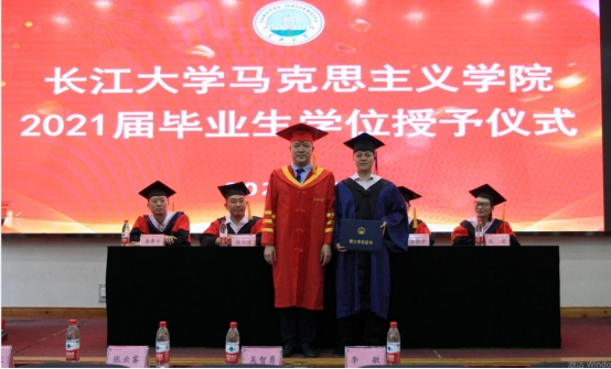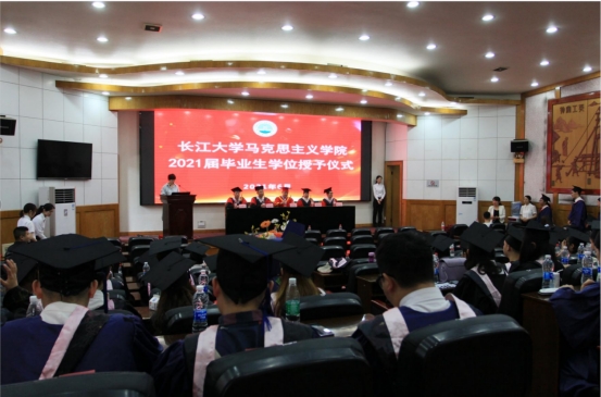 2021年6月11日,马克思主义学院在11教学术报告厅举行了2021届毕业生学位授予仪式。姜学勤院长、黄晓云副院长、涂江波副院长、唐青才副教授、张莉副教授参加了本次活动,院党委副书记马小佼主持仪式。