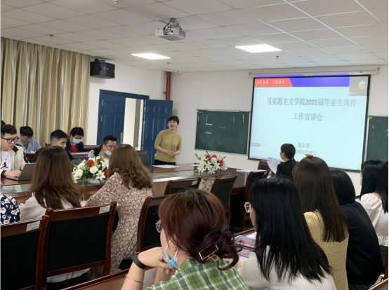 为加强毕业生诚信还款、诚信就业教育,马克思主义学院于2021年5月28日在文科楼1104室组织开展了2021毕业生离校工作会,专题宣讲了诚信还款、诚信就业的相关工作。学院党委副书记马小佼、辅导员张云雾以及全院本、研毕业生参加了本次会议。