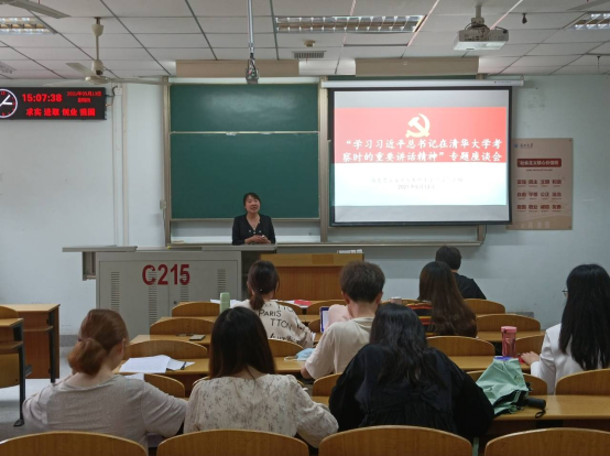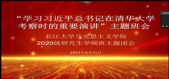 2020级学硕班级则邀请了辅导员张云雾老师一同参会。会上,由周婵娟同学领读《习近平总书记在清华大学考察时的重要讲话》。辅导员张云雾老师进行了总结发言,她强调“要认认真真学习、领悟习近平总书记的讲话,将精神贯穿到日常生活中去践行。”