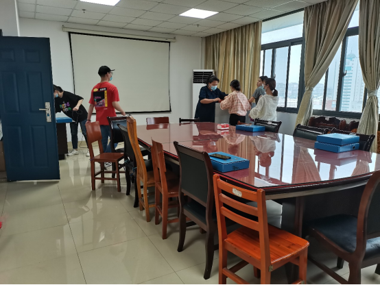 下午2点45分,志愿者们在南苑19A宿舍楼下集合清点人数,天空下起的小雨并没有冲淡他们的热情,反而为闷热的天气增添了几分凉爽。志愿者们准时到达文科大楼,在老师的指导下被分为两组,分配了任务。扫地、拖地、试卷整理、摆放桌椅等等都有条不紊地进行。活动过程中,志愿者们始终保持着热情完成了清扫活动,凸显出了我院志愿者健康向上、乐于奉献的良好品格。随着整个清扫整理工作顺利完成,会议室焕然一新。最终,以合影留念结束了本次的志愿活动。