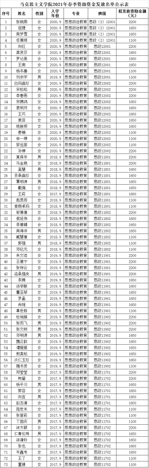 根据年度工作计划,现将我院2021年春季国家助学金发放名单予以公示。