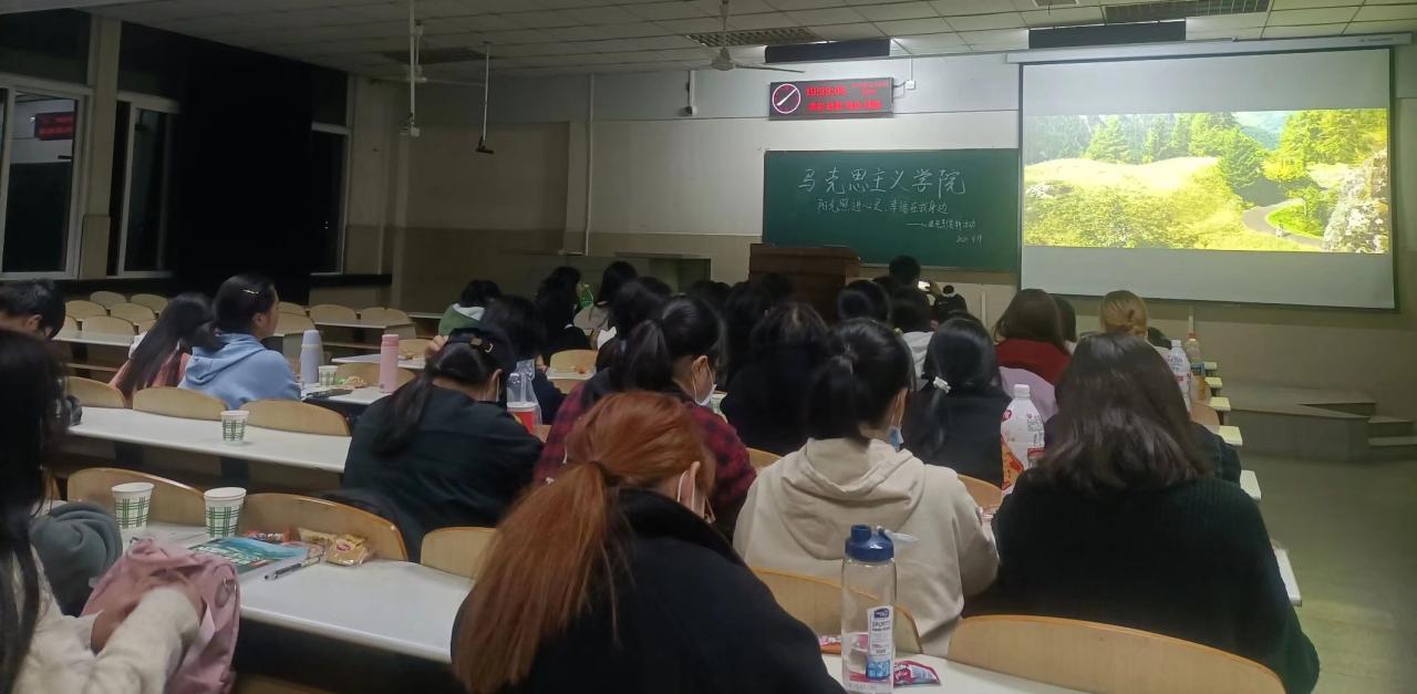 为营造关注心理健康、懂得心理健康、重视心理健康的氛围,11月19日晚,马克思主义学院在12教303教室进行了“阳光照进心灵,幸福在我身边”心理电影赏析活动,辅导员李敏和大一大二学生参加活动。