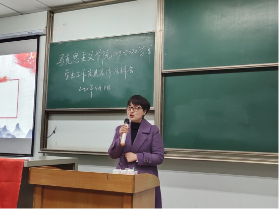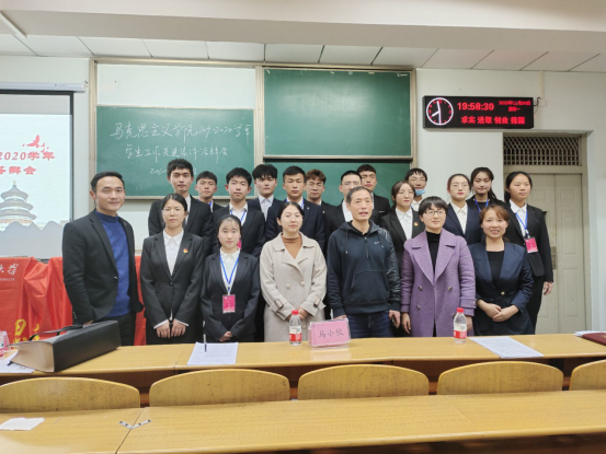 (通讯员:李春燕,摄影:王晓彤 丁至乐)根据年度工作计划,学校决定评选表彰2019-2020学年学生工作先进集体。除优秀个人外,马克思主义学院可向学校推荐一个标兵班集体或优秀班集体。为了更加公平公正组织评比,也为了向大一的同学们展示优秀班集体风貌,马克思主义学院于11月9日19:00,在13教D424举行了2019-2020学年学生工作先进集体答辩会。答辩会由院党委书记吴智勇、党委副书记马小佼、辅导员兼班主任张云雾、李敏,班主任汤波兰等5位领导、老师作为评委。