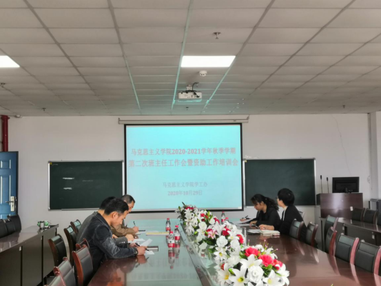 2020年10月29日,马克思主义学院在文科楼1104会议室组织召开了本学期第二次班主任工作会暨资助工作培训会。会议由学院党委副书记马小佼主持,班主任、全体辅导员参会。