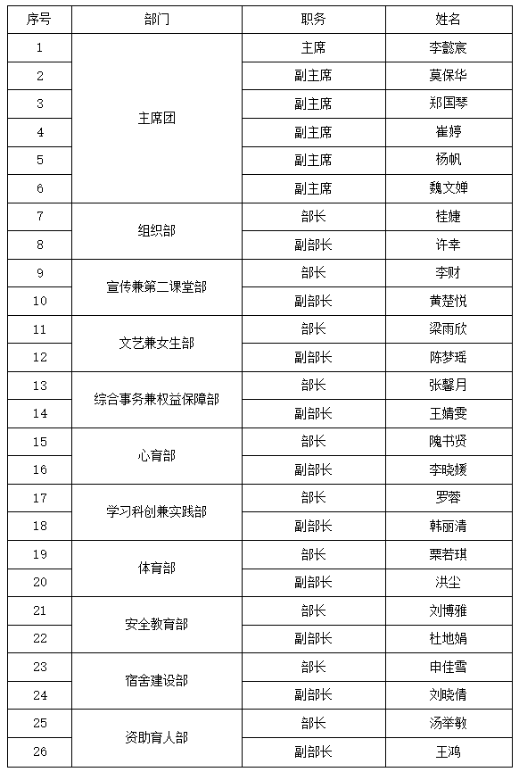 本着公平、公正、公开的原则,经自主申报、资格审查、公开答辩、综合考察等环节,现将马克思主义学院第九届团委学生会副部及以上学生干部换届竞选结果公示如下: