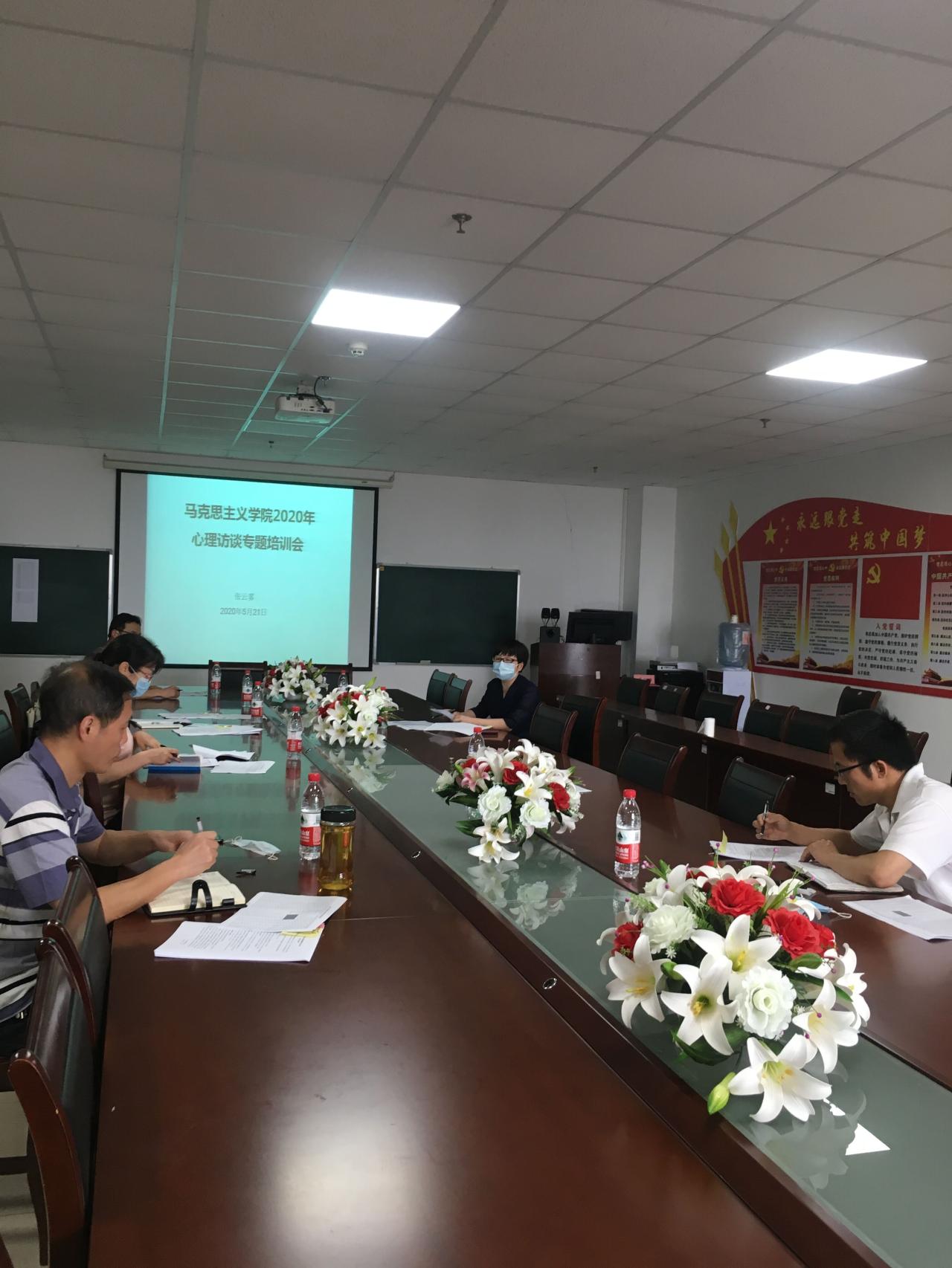 常态化疫情防控情况下,为有序推进学生工作,2020年5月21日,马克思主义学院在文科楼A区1104会议室召开了本学期班主任工作会暨心理访谈专题培训,学院党委副书记、辅导员及班主任参加了本次会议。