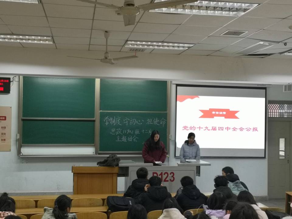 12月,结合学校“学制度,守初心,担责任”主题教育安排,马克思主义学院认真组织开展了十九届四中全会精神学习团会。