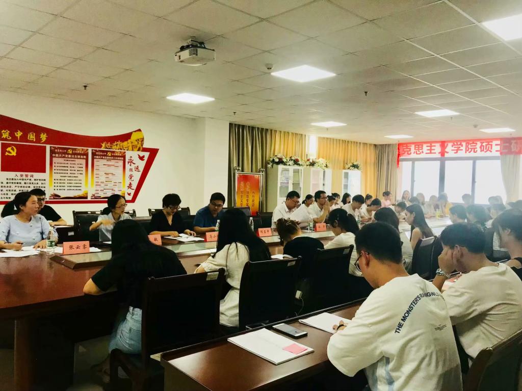 (通讯员:高晗)2019年9月11日下午,马克思主义学院在文科大楼1104会议室召开了2016级学生考研交流座谈会暨教育实习安全教育大会。马克思主义学院院长姜学勤、党委副书记马小佼、院长助理谷军、万敏老师、邓亚中老师、魏强老师、学工办主任张云雾、兼职辅导员董思遥以及16级全体学生参加了会议,马小佼副书记主持会议。