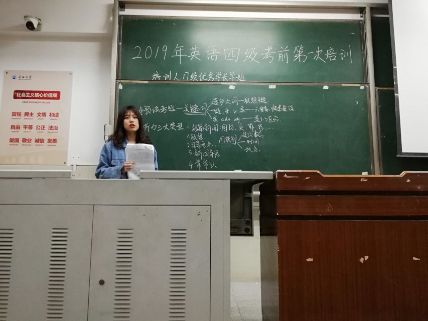 (通讯员:邱诗琪)在英语四级考试临近之际,为加深同学们对考题熟练程度和理解,有效备战四级,马克思主义学院于4月10日晚7:00,在主教207室开展了第一次英语四级考前培训。本次培训的主讲人是17级四级成绩优秀的毛雨晴和覃美南两位同学,培训的主要内容为作文和听力专题。