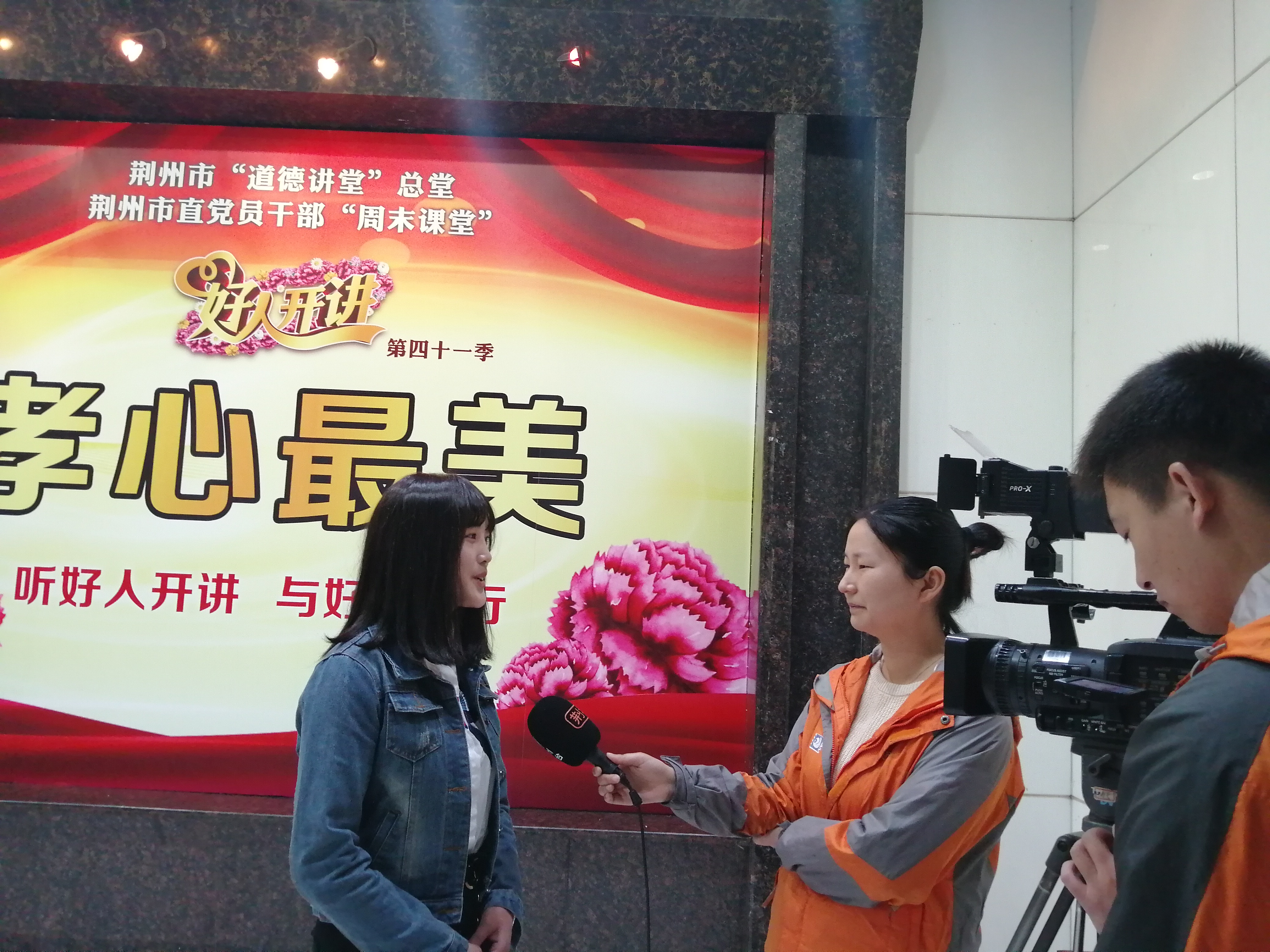 (通讯员 饶静)为着力培养德智体美劳全面发展的新时代新青年,马克思主义学院于2019年3月19日开展了一次别开生面的教学实践活动——组织思政11601、思政11602班35名优秀学生代表前往荆州电视台参与弘文尚德节目《好人开讲》的录制,与上百名观众一起感受道德模范的榜样力量。