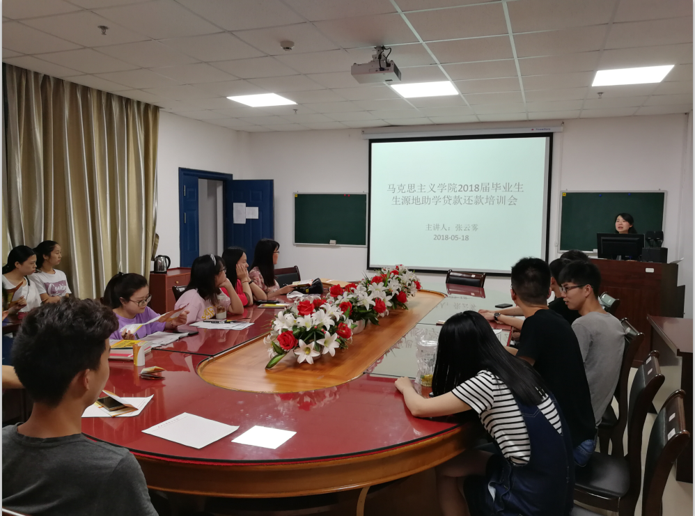 为加强2018届毕业生对生源地助学贷款还款的了解、诚信还贷,5月18日,马克思主义学院“2018届毕业生生源地助学贷款还款培训会”在文科大楼1125室举行。本次培训会由马克思主义学院辅导员张云雾老师主讲,全体在校毕业生参加了会议。