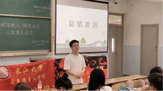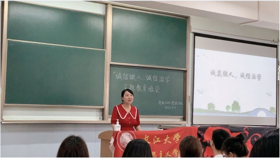6月3日上午,马克思主义学院思政12101班与思政12102班联合开展了“诚信做人,诚信治学”主题班会。本次班会围绕安全教育和诚信教育两大主题开展。班会邀请了班主任何波老师和辅导员张云雾老师莅临指导。
