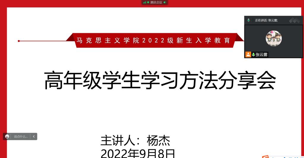 为帮助 2022 级本科新生尽快转变角色,马克思主义学院于9月8至9月9日通过线上方式组织开展了新生适应教育系列讲座。