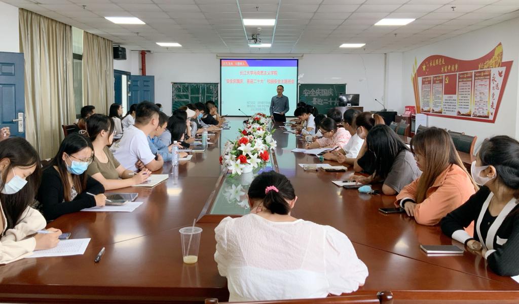 为进一步强化学生安全防范意识,落实安全工作责任,2022年9月27日中午,马克思主义学院在文科楼1104室和腾讯会议同步召开“安全庆国庆、喜迎二十大”安全教育主题班会。院党委副书记马小佼、辅导员张云雾、李敏以及全院本、研学生参会。