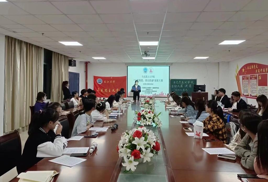 (通讯员 周芯如)9月27日晚7时,马克思主义学院于文科楼1104室举办“才聚荆楚,勇往职前”模拟求职大赛决赛。经过初赛无领导小组讨论12进6选拔,赵金铭、何利娅、张玉婷、孟颖佳、齐晓杭、魏宇豪六位同学进入决赛,角逐最终的胜者。决赛以半结构化面试的形式选拔。学院党委副书记马小佼、法学院就业专干盛文军、学院辅导员李敏任评委。